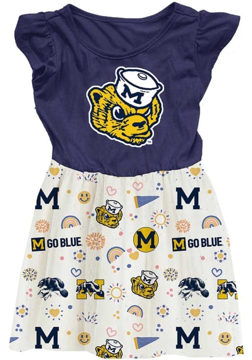 Let your baby's unique style show in this Michigan Wolverines Baby Girls Dress. Featuring a screenprint team graphic, this Blue Wolverines Dress is the perfect way to show off your style and pride for the Michigan Wolverines.