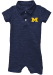 Product Details Product Details 2 button placketShort leg romperScreen print graphic left chestPolo one pieceSofthand cotton/ poly blendPerfect for any young sports fan!80% COTTON / 20% POLYESTERImport, Domestic Officially Licensed Your little Michigan Wolverines fan will be the cutest at the game in this Blue Michigan Wolverines Romper One Piece Polo. This Romper One Piece Polo features a screenprint team graphic.
