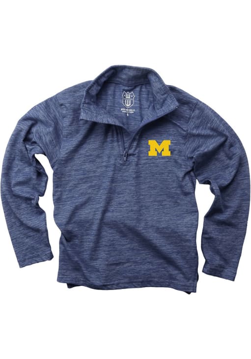 Show your style in this Boys Blue Michigan Wolverines Cloudy Yarn Qtr Zip! This Long Sleeve Pullover features a screenprint team graphic on left chest. You'll be cozy and comfortable heading to the game with the Wolverines Boys Michigan Qtr Zip.