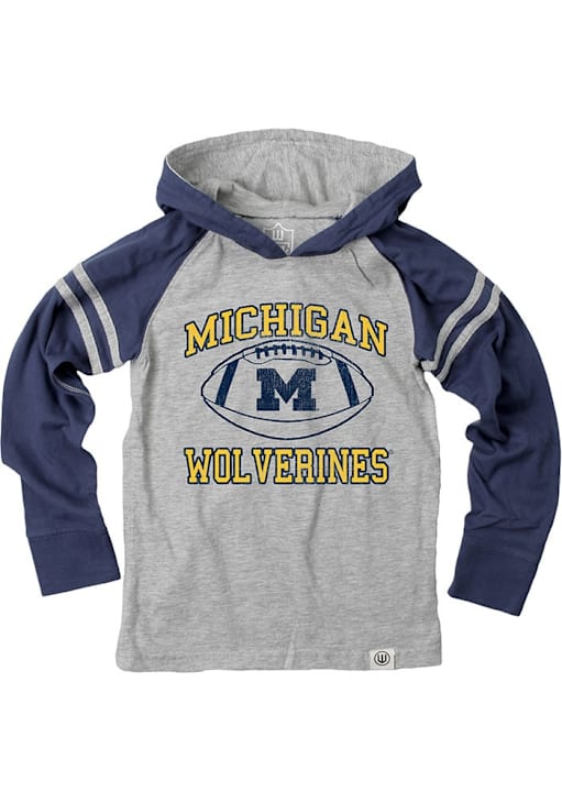 Go to gamedays in style in this Youth Blue Michigan Wolverines Wes and Willy Stripe Hooded Tee! This Wolverines Hoodie Shirt features a screenprint team graphic that will be sure to keep you warm and cozy.
