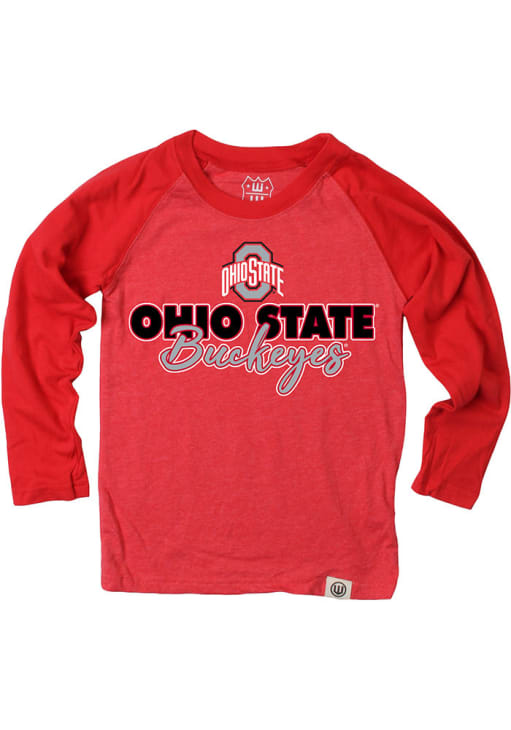Support for your favorite team in this Boys Red Ohio State Buckeyes Raglan Arch Script Name Drop Long Sleeve T-Shirt! This T-Shirt features a screenprint team graphic, so everyone will know your favorite team is the The Ohio State University! This is the perfect Ohio State Buckeyes Boys T-Shirt for wearing to game day or everyday. Go Buckeyes!