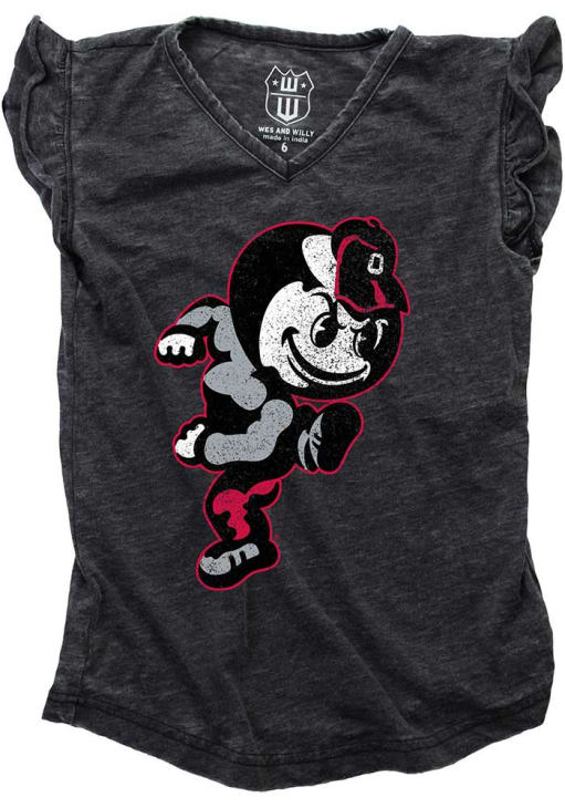 Show your support for Buckeyes in this Toddler Girls Black Ohio State Buckeyes Short Sleeve Tee! This Ruffle Vault Fashion T-Shirt features a screenprint team graphic that pairs perfect with any wardrobe. Get ready to show pride for your favorite team as you cheer "Go Buckeyes"