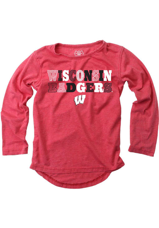 Show your style at school in this Girls Red Wisconsin Badgers Hi-Lo Multi Font Long Sleeve T-shirt! This Long Sleeve Tee features a screenprint team graphic. You'll be cozy and comfortable head to the game or class with the Badgers Girls Wisconsin Long Sleeve T-shirt.