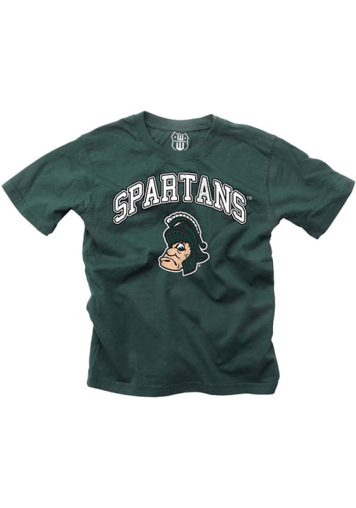 Support your favorite team in this Boys Green Michigan State Spartans Jersey Vintage Arch Mascot Short Sleeve T-Shirt! This T-Shirt features a screenprint team graphic, so everyone will know your favorite team is the MSU! This is the perfect Michigan State Spartans Boys T-Shirt for wearing to game day or everyday. Go Spartans!