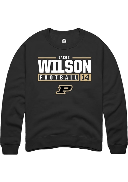 Jacob Wilson Rally Mens Black Purdue Boilermakers NIL Stacked Box Crew Sweatshirt