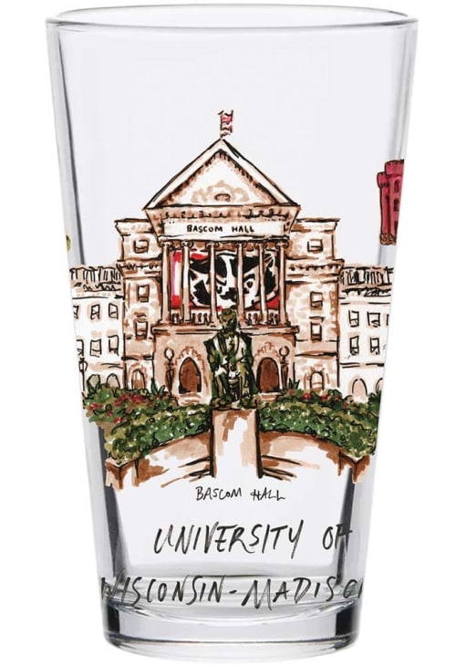 Product Details Product Details Holds 16ozDouble-sided designHand crafted artwork by Laura WilcoxMade out of durable glassPerfect for enjoying your favorite beverage!GLASSHand wash, drip dry Officially Licensed Enjoy a cold one and support your favorite team with this Wisconsin Badgers 16oz University Pint Glass. This Pint Glass features a team logo on team color background. Go Badgers!
