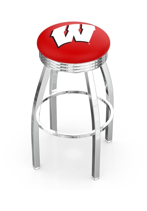 Silver Wisconsin Badgers 3 Ring Chrome Seat Pub Stool