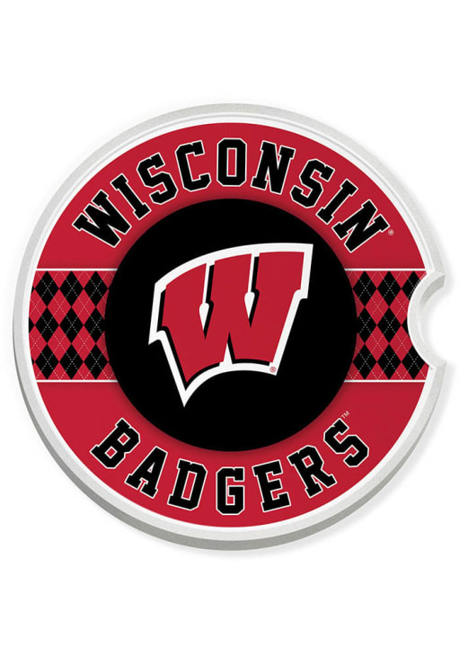 Red Wisconsin Badgers Argyle Car Coaster