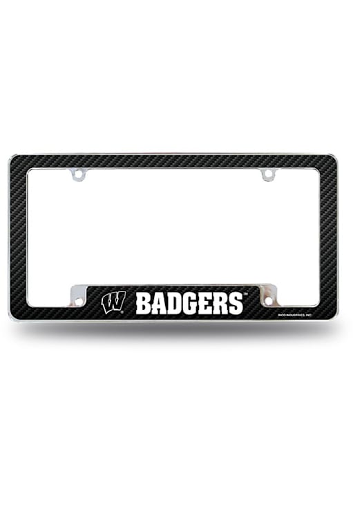 Silver Wisconsin Badgers Carbon Fiber All Over Chrome License Plate Frame