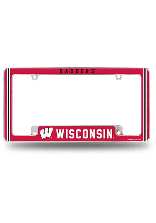 This Badgers License Plate Holder features a team logo and team color.