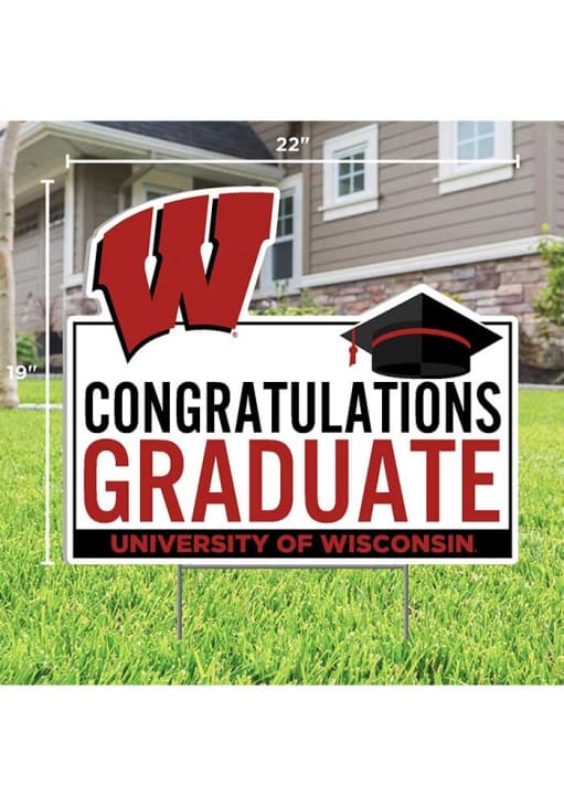 Product Details Product Details Approximatley 19"x22"Cut to Shape Weatherproof PlasticMetal Stakes IncludedFull Color PrintGraduation Sign Officially Licensed Wisconsin Badgers Congratulations Graduate Yard Sign will let everyone know you root for the Badgers proudly. This Yard Sign features a weather resistant material.