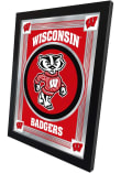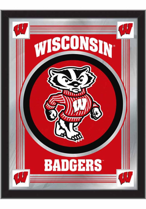 Product Details Product Details Vibrant, full color artwork1/8" glass with Mirrored Accents15" x 26" matt black wood frameSaw-tooth hanger for easy hangingGreat gift for any occasion!USA Officially Licensed This Wisconsin Badgers Mascot Logo Hanging Back Bar Mirror is a great addition to show your Badgers pride. A great match to the game room bar, this Back Bar Mirror features a team logo that will be sure to draw attention to your fan cave.