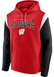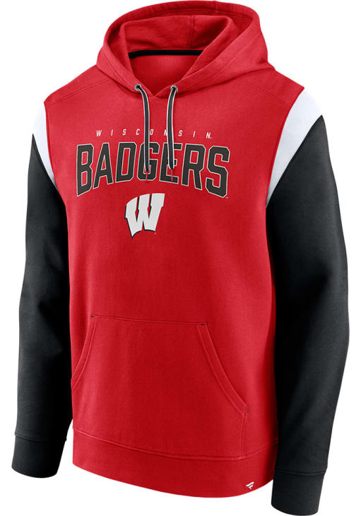 Embrace your Badgers pride and showcase your team spirit with confidence in this Wisconsin Badgers Long Sleeve Hoodie! Stay warm and stylish with the Wisconsin Mens Red Fundamentals Colorblock Hooded Sweatshirt. Designed with screen print team graphic across chest, this Badgers Long Sleeve Hoodie is a must-have for dedicated fans.