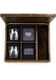 Product Details Product Details Oak chest with pounded nail corner accentsSecure storage for your favorite 750mL whiskey bottleTwo 8oz heavy-bottomed lowball glassesTwo sandstone coastersSix soapstone whiskey stones to chill your drink without diluting itImported Officially Licensed Complete your Badgers bar to show your team spirit with this Wisconsin Badgers Drink Set. This great Drink Set features a team logo.