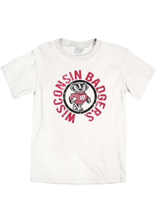 Display your team spirit with this remarkable Wisconsin Badgers Blue 84 White Circle Name and Mascot Short Sleeve T Shirt! The Wisconsin Short Sleeve Tee showcases a screenprint team graphic on front chest that truly sets it apart. Stand out from the crowd and proudly declare your allegiance to the Badgers with this exceptional White Wisconsin T Shirt. Go Badgers!