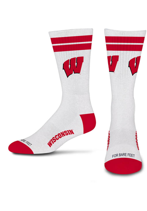 Product Details Product Details Rally House has the perfect Wisconsin Badgers White Stripe Mens Crew Socks to take your Badgers fandom to the next level! You'll be glad to wear these Crew Socks that feature a woven logo.