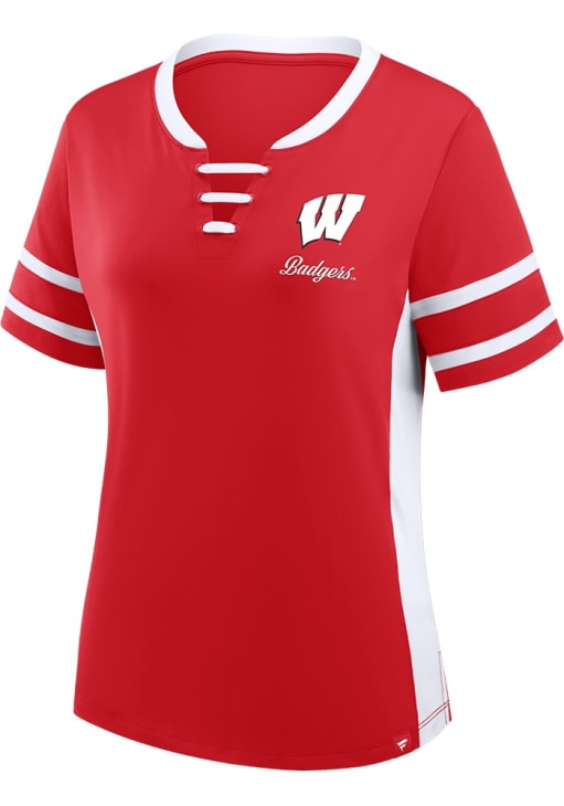 Product Details Product Details Classic fitlace-up necklinecolor blocksoft touchClassic Fit92% POLYESTER / 8% SPANDEXV NeckBelow HipImport, Domestic Officially Licensed This remarkable Wisconsin Badgers Womens Be Fearless Fashion Football Jersey, showcasing a screen print team name and team logo on left chest. Elevate your admiration for Wisconsin Badgers as you embrace this exceptional piece, designed to impress.