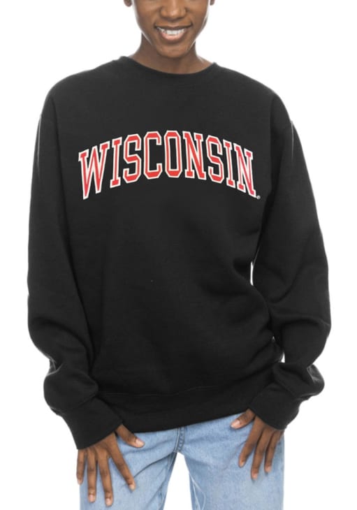 Gear up for the ultimate game day experience with this remarkable Wisconsin BadgersWomens Black Sport Fleece Crew Sweatshirt! Designed with the true fan in mind, this Badgers Long Sleeve Sweatshirt features a applique team name on center chest. Stay warm and comfortable with this Womens Wisconsin Badgers Crew Sweatshirt.