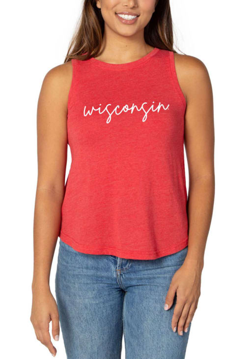 Elevate your tailgating style with this Wisconsin Badgers Womens Tank Top. Stay fashionable and comfortable in the refreshing Red Swing Sleeveless Shirt. Discover the enticing details of this Wisconsin Tank Top, showcasing a screen print team name on center chest that's sure to impress.