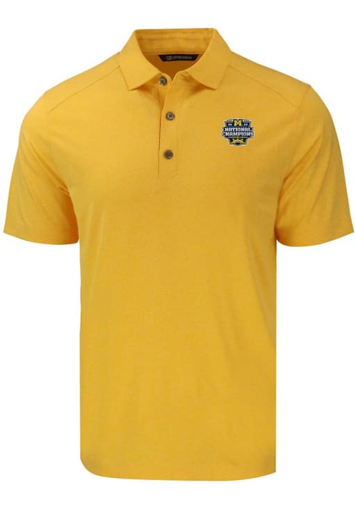Enhance your professional style with this striking Mens Gold Short Sleeve Polo Shirt! Showcase your team pride among colleagues with this exceptional Michigan Gold 2023 College Football National Champions Forge Short Sleeve Polo. Stand out and make a statement in this Michigan Wolverines Short Sleeve Polo, featuring a moisture wicking material that adds a touch of distinction to your look.