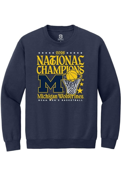 Gear up for the ultimate game day experience with this remarkable Michigan WolverinesMens Navy Blue MBB National Champs 2026 Hoop Crew Sweatshirt! Designed with the true fan in mind, this Wolverines Long Sleeve Crew Sweatshirt features a championship team logo. Stay warm and comfortable with this Mens Michigan Wolverines Crew Sweatshirt.