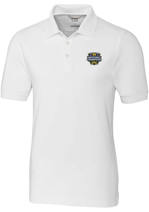 Enhance your professional style with this striking Mens White Short Sleeve Polo Shirt! Showcase your team pride among colleagues with this exceptional Michigan White 2023 College Football National Champions Advantage Short Sleeve Polo. Stand out and make a statement in this Michigan Wolverines Short Sleeve Polo, featuring a knit pique with soft wash finish that adds a touch of distinction to your look.