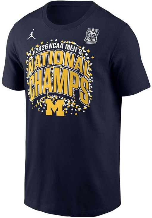Display your team spirit with this remarkable Michigan Wolverines Nike Navy Blue 2026 Men's Basketball National Champions Confetti Short Sleeve T Shirt! The Michigan Short Sleeve Tee showcases a screen print graphic on front that truly sets it apart. Stand out from the crowd and proudly declare your allegiance to the Wolverines with this exceptional Navy Blue Michigan T Shirt. Go Michigan!