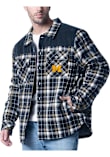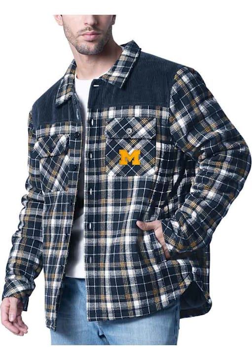 Make a bold statement in this Michigan Wolverines Blue Left Chest Logo Changeup Plaid Jacket Long Sleeve Fashion T Shirt! This Michigan Long Sleeve Fashion Tee features a embroidered team logo at left chest pocket. Go Michigan!