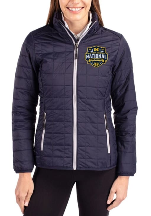 Womens Michigan Wolverines Navy Blue Cutter and Buck 2026 MBB Champions Rainier PrimaLoft Heavy We..