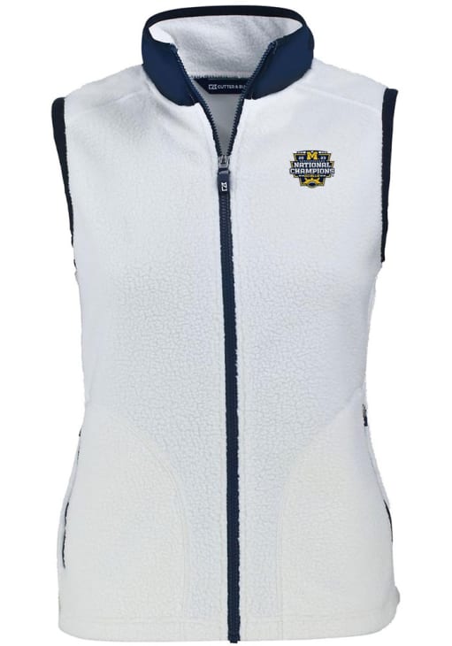 Gear up for the upcoming tailgate with the ultimate Michigan Wolverines Womens White Vest. Stay warm in this Michigan 2023 College Football National Champions Cascade Sherpa Sleeveless Jacket, which features a brushed fleece inside.
