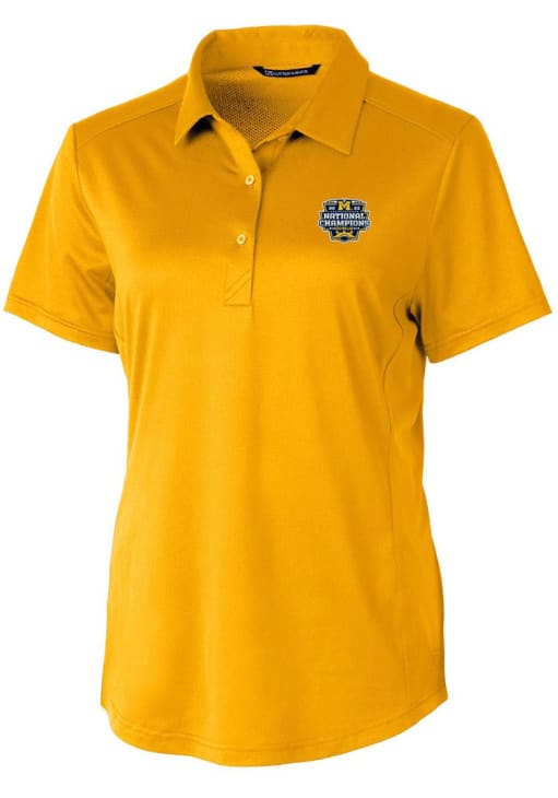 Enhance your professional style with this striking Womens Gold Short Sleeve Polo Shirt! Showcase your team pride among colleagues with this exceptional Michigan Gold 2023 College Football National Champions Prospect Short Sleeve Polo. Stand out and make a statement in this Michigan Wolverines Short Sleeve Polo, featuring a ultra fine pique that adds a touch of distinction to your look.
