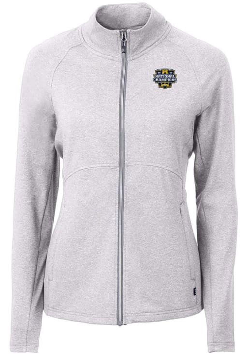 Stay warm and cozy with this Michigan Wolverines Womens Grey 2023 College Football National Champions Adapt Eco Knit Light Weight Jacket! Cheer on the Wolverines in this Michigan Light Weight Jacket. With a wind resistant recycled shell, you won't want to be caught without this Light Weight Jacket on gameday.