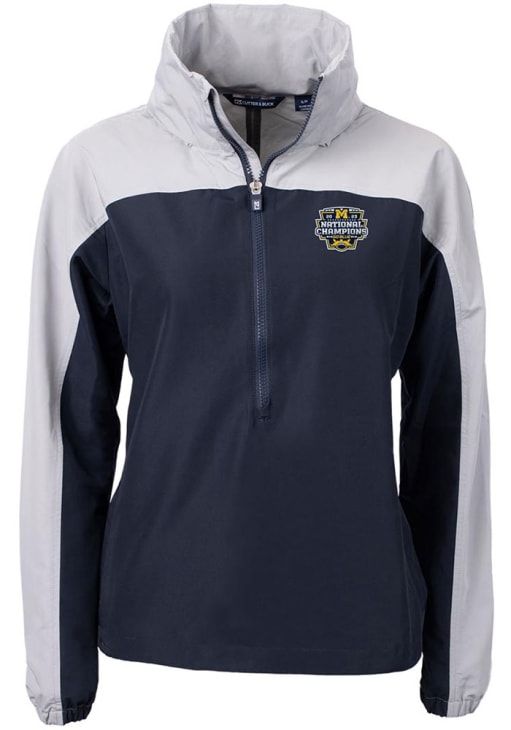 Get ready for the ultimate game day experience in this Michigan Wolverines Womens Navy Blue 2023 College Football National Champions Charter Eco Pullover! This Wolverines Long Sleeve Pullover features a water resistant finish. Stay cozy and embrace your spirit with this Womens Michigan Wolverines Pullover.