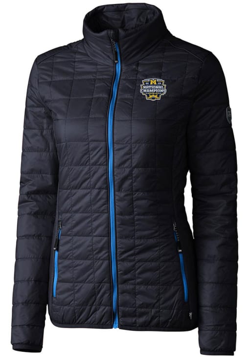 Stay cozy in this Michigan Wolverines Womens Navy Blue 2023 College Football National Champions Rainier PrimaLoft Filled Jacket. This Wolverines Filled Coat is a great way to stay warm and show your Michigan spirit in even the coldest weather. Don't leave home without this Michigan Wolverines Filled Jacket, which features a recycled polyester insulation.