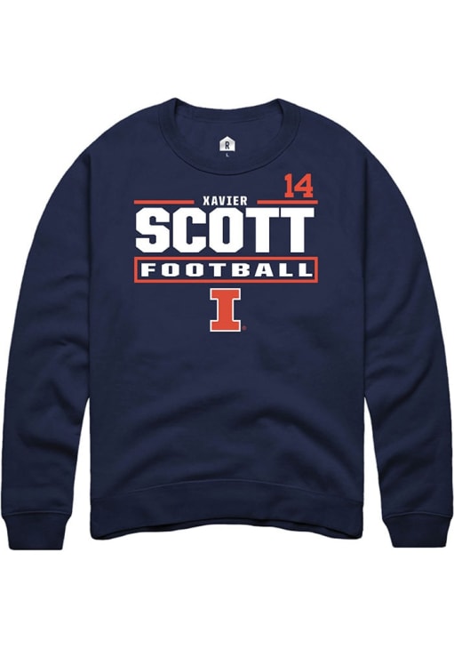Support your Illinois Fighting Illini and favorite Xavier Scott in this Illinois Fighting Illini Mens Navy Blue Football NIL Stacked Box Player Crew. This Crew Sweatshirt features a NIL graphic, and is sure to stand out in the stadium. Perfect to wear on game day or any day!