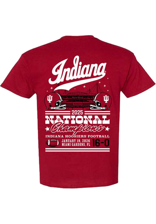 Product Details Product Details Ribbed Collar Contrasting Collar and Cuff Relaxed FitAlmost No ShrinkageComfy Material Officially Licensed Your future Indiana Hoosiers will be gameday ready in this CrimsonYouth Short Sleeve Tee. This 2025 College Football National Champions 2 Helmets T-Shirt features a screen print graphic on front chest.