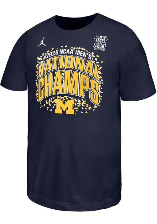 Your future Michigan Wolverines will be gameday ready in this Navy BlueYouth Short Sleeve Tee. This 2026 Men's Basketball National Champions Confetti T-Shirt features a screen print team graphic.