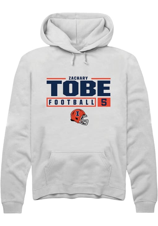 Zachary Tobe Rally Mens White Illinois Fighting Illini NIL Stacked Box Hooded Sweatshirt