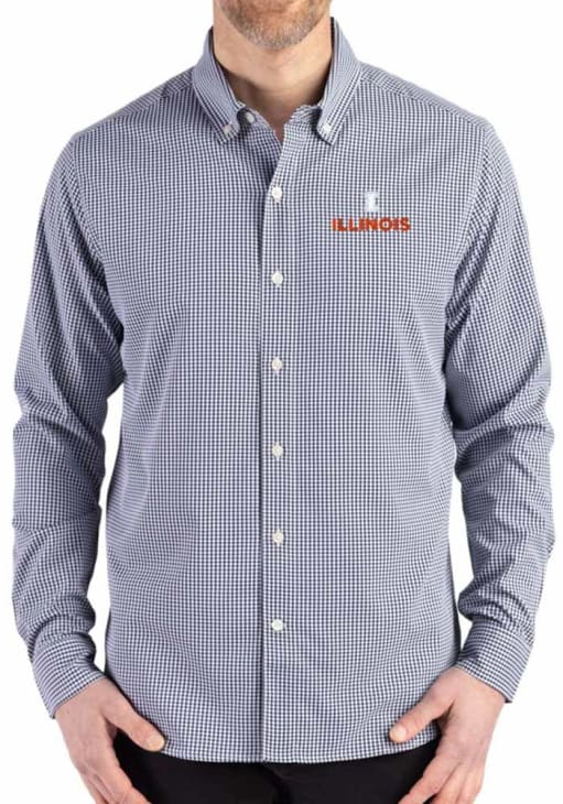 Show your Fighting Illini spirit show in the office with this Illinois Fighting Illini Dress Shirt! Embrace your team spirit and showcase it proudly in this Mens Navy Blue Gingham LS Woven Long Sleeve Long Sleeve Button Down Shirt. This Long Sleeve Dress Shirt features a team logo.