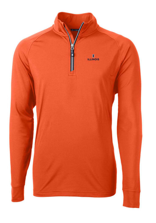 Mens Illinois Fighting Illini Orange Cutter and Buck Adapt Eco Knit Qtr Zip Pullover