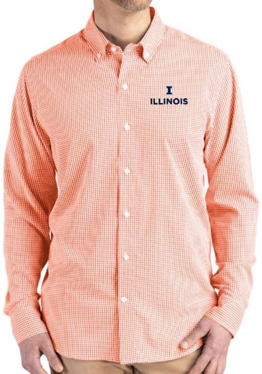 Show your Fighting Illini spirit show in the office with this Illinois Fighting Illini Dress Shirt! Embrace your team spirit and showcase it proudly in this Mens Orange Gingham LS Woven Long Sleeve Long Sleeve Button Down Shirt. This Long Sleeve Dress Shirt features a team logo.