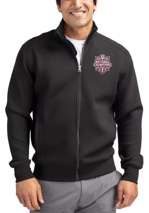 Mens Indiana Hoosiers Black Cutter and Buck 2025 CFP National Champions Roam Long Sleeve Zip