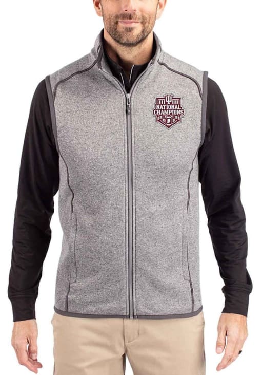 Size Chart for Mens Indiana Hoosiers Grey Cutter and Buck 2025 CFP National Champions Mainsail Vest