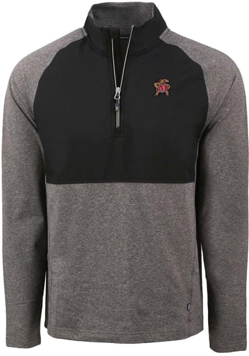 Embrace the warmth and showcase your Terrapins pride with our Maryland Terrapins Long Sleeve Qtr Zip Pullover. This Mens Black Adapt Eco Hybrid Long Sleeve Pullover offers a wind resistant recycled shell for the perfect combination of comfort and style. Elevate your everyday look with this must-have Maryland Terrapins Long Sleeve Qtr Zip Pullover.