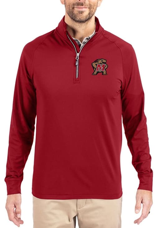 Mens Maryland Terrapins Cardinal Cutter and Buck Adapt Eco Knit Qtr Zip Pullover