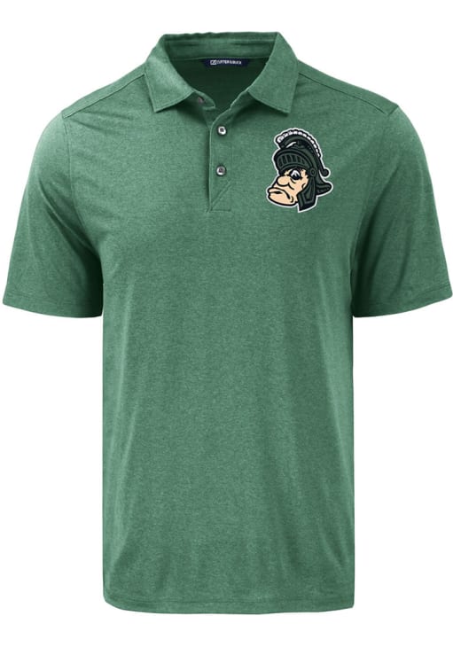 Mens Michigan State Spartans Black Cutter and Buck Gruff Sparty Coastline Short Sleeve Polo Shirt