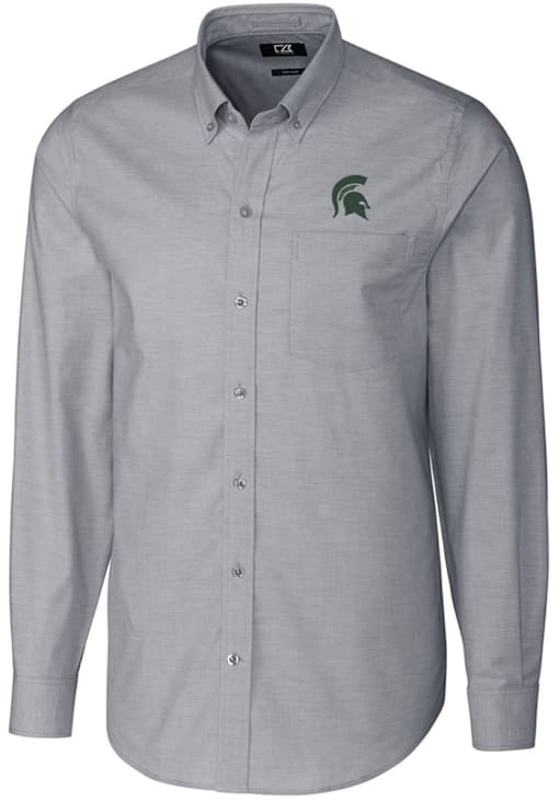 Show your Spartans spirit show in the office with this Michigan State Spartans Dress Shirt! Embrace your team spirit and showcase it proudly in this Mens Charcoal Stretch Oxford Long Sleeve Long Sleeve Button Down Shirt. This Long Sleeve Dress Shirt features a Easy Care Stretch fabric.