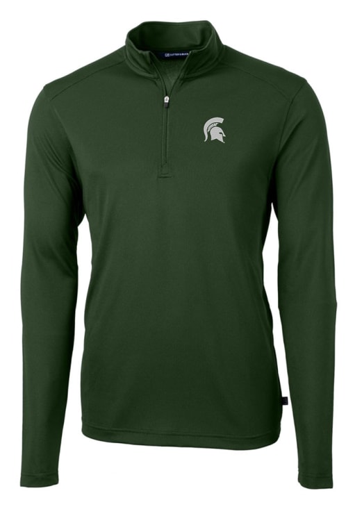 Embrace the warmth and showcase your Spartans pride with our Michigan State Spartans Long Sleeve Qtr Zip Pullover. This Mens Green Virtue Eco Pique Long Sleeve Pullover offers a high quality certified eco-friendly recycled drytec polyester for the perfect combination of comfort and style. Elevate your everyday look with this must-have Michigan State Spartans Long Sleeve Qtr Zip Pullover.