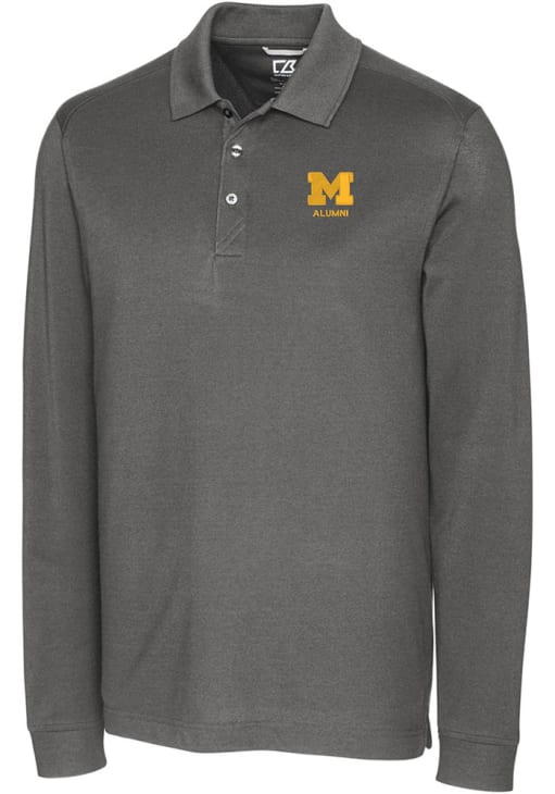Enhance your professional style with this striking Grey Big and Tall Polo! Showcase your team pride among colleagues with this exceptional Michigan Grey Alumni Advantage Pique Long Sleeve Big and Tall Golf Shirt. Stand out and make a statement in this Michigan Wolverines Big and Tall Golf Shirt, featuring a knit pique with soft wash finish that adds a touch of distinction to your look.