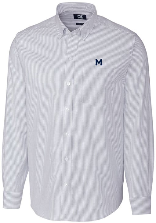 Blue Michigan Wolverines Cutter and Buck Mens Stretch Oxford Stripe Big and Tall Dress Shirt